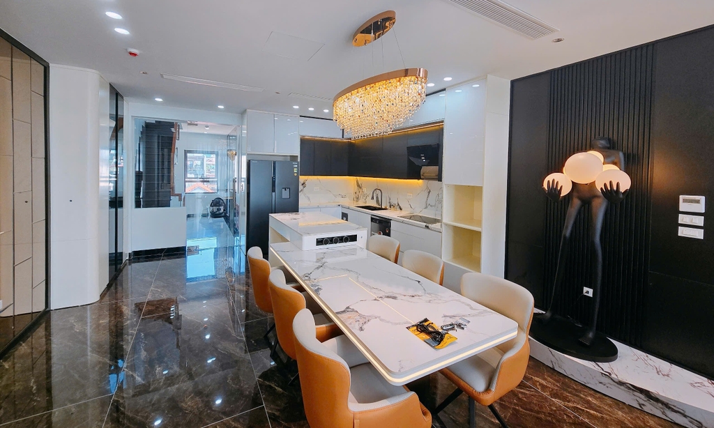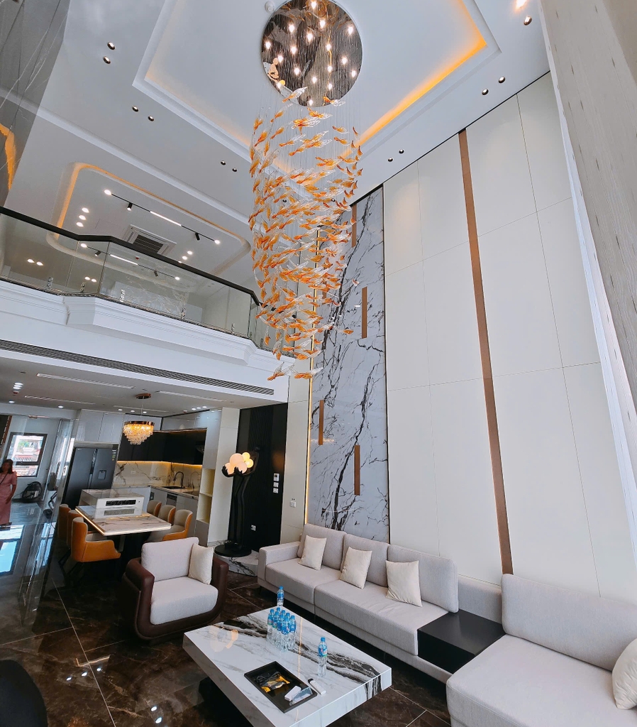 🍀 Tầng 5: Phòng khách bếp Duplex, trang bị full nội thất không gian Luxury, hệ thống loa tivi chuẩn CINEMA nhập khẩu Đức.